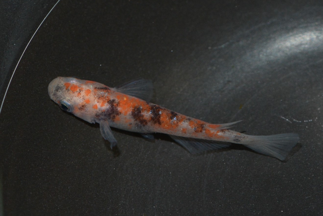 野尻氏が作出した非透明鱗三色の代表的なメダカです。