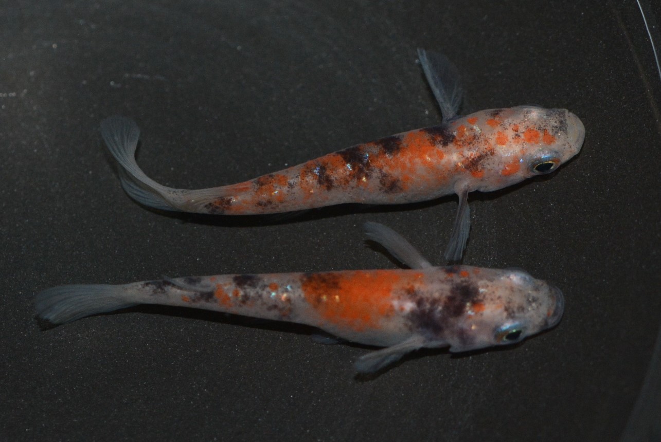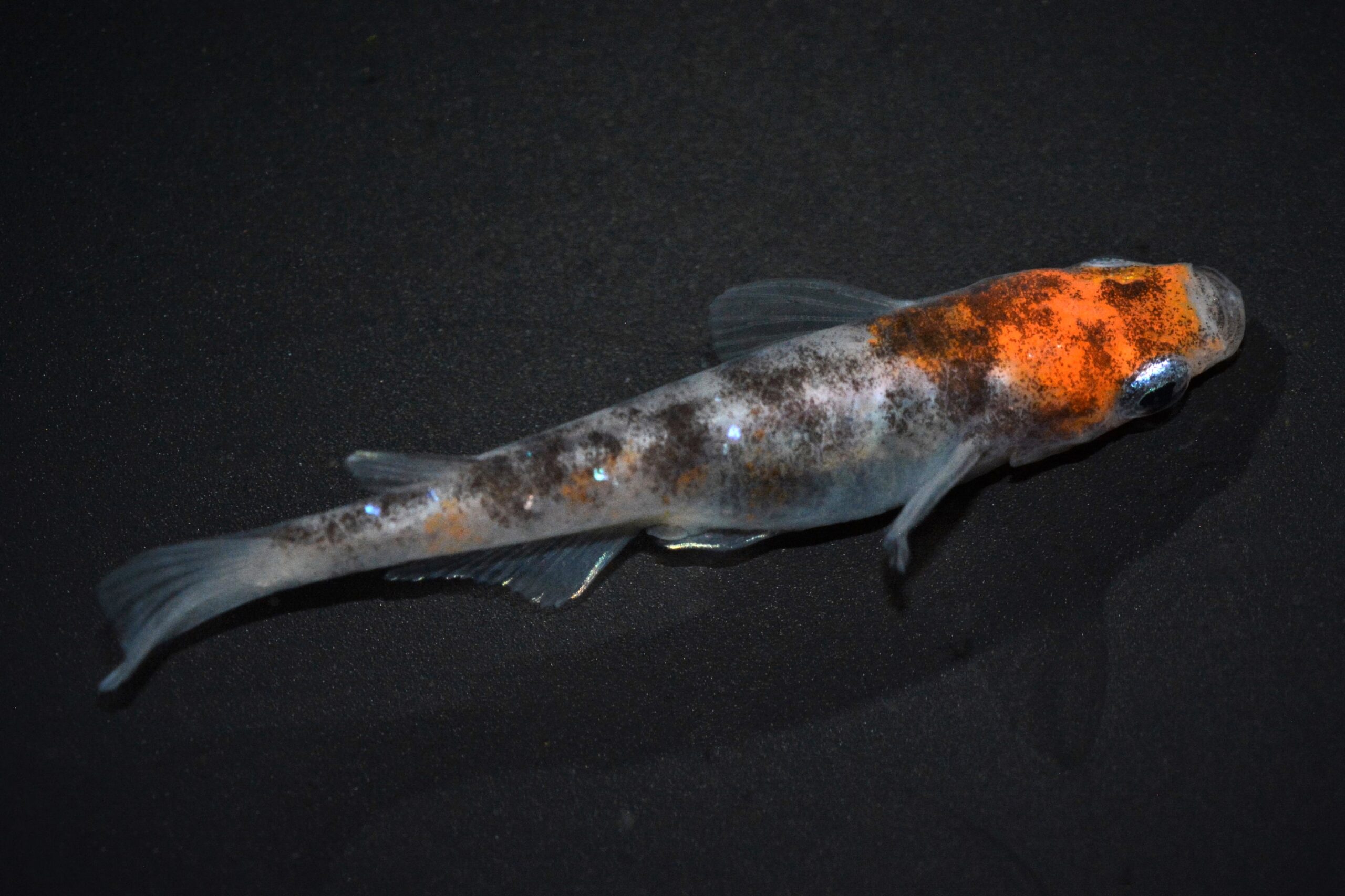 2017年になり、その魅力が一気に爆発したと言える非透明鱗三色が、島根県出雲市在住の野尻治男氏が作られた、”雲州三色”である。”雲州三色”の魅力は、何と言っても基調色の白地の美しさと黒ブチの明瞭さである。作出過程で一度、琥珀透明鱗が交配されているのだが、そこから遺伝した透明鱗性は3年ほど前からほぼ出なくなったそうである。それも野尻さんの白地と黒ブチ(野尻さんは墨と呼ぶ)にこだわった選別により、透明鱗の遺云子は完全に淘汰されたようである。