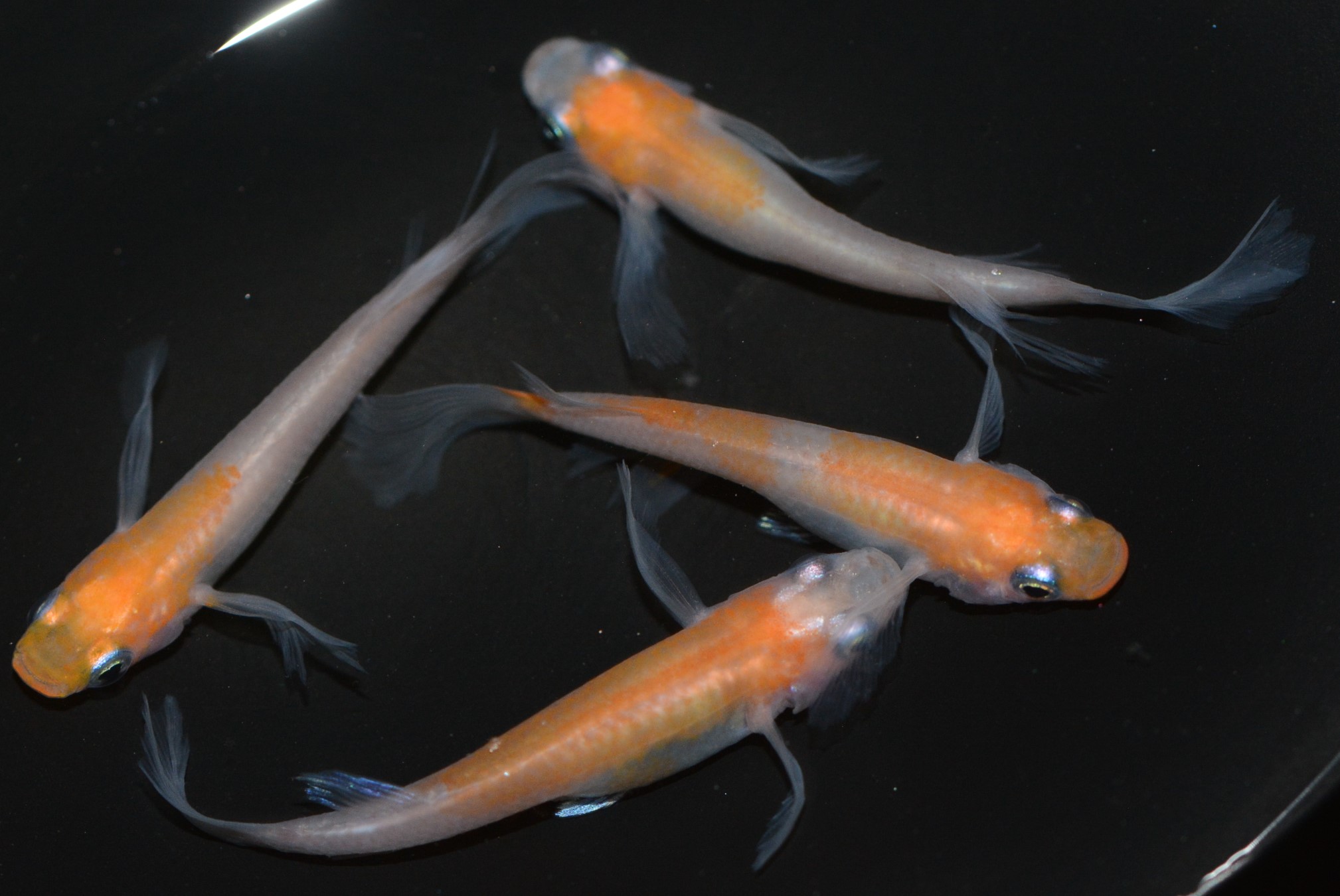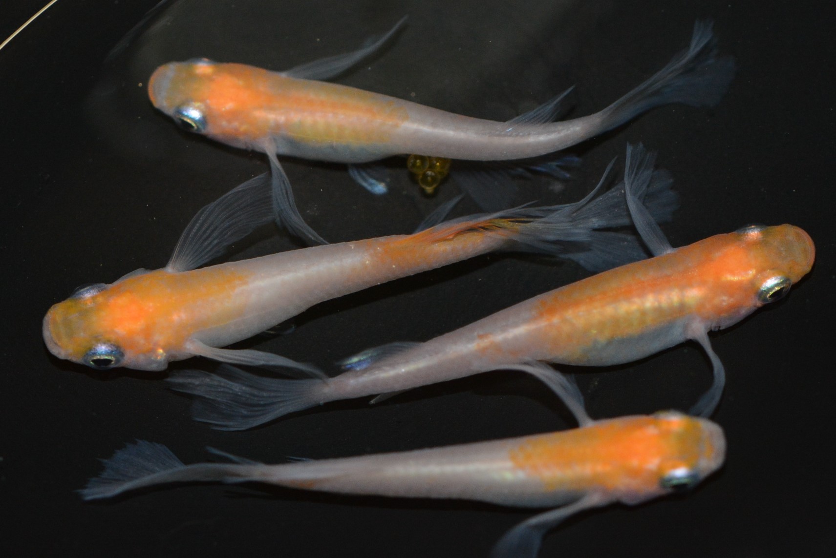 白と朱赤の2色でヒレ長の形質を持つメダカです。