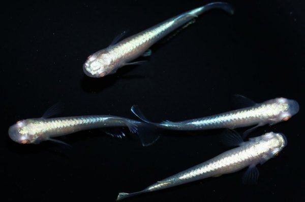 鱗血統の一つで、半透明鱗アルビノ体外光メダカのニックネームです。