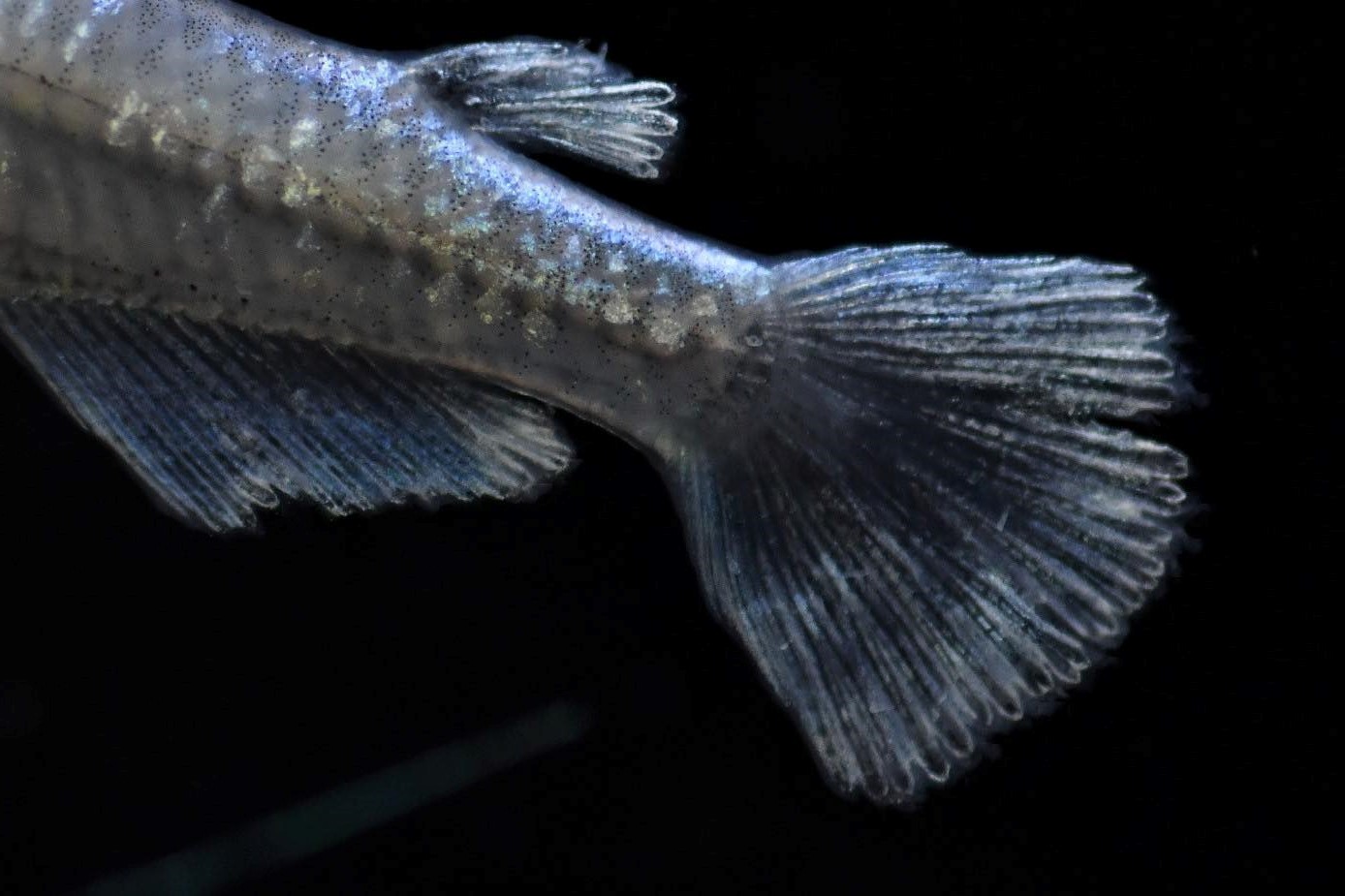 尾ヒレ以外のヒレもヒレ光が強く、背ヒレの形が変化する個体やロングフィンになる個体もいます。
