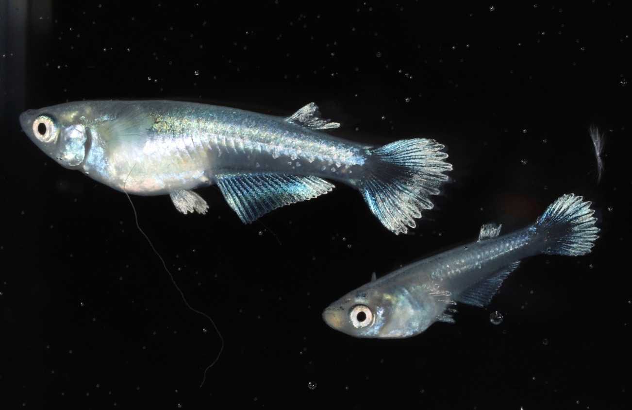 ホワイトモルフォ亜種(白体外光ヒレラインモルフォ)(提供 Azumaめだか)