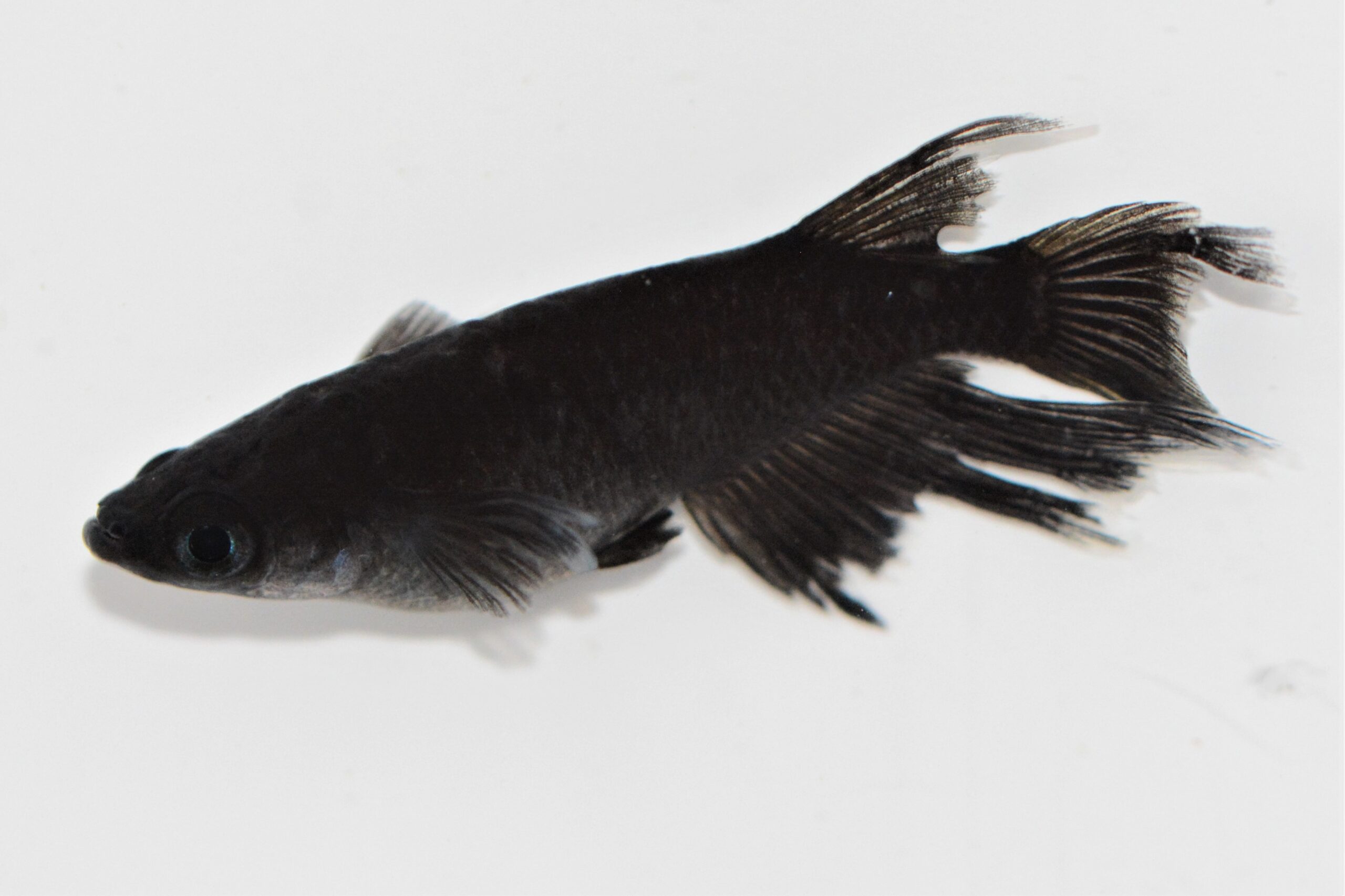 ブラック体色(背地反応無し)でスワローの形質を持つメダカです。