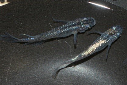 青体色(パープルブルー)で半透明鱗とラメとヒレ長の形質を持つメダカです。
