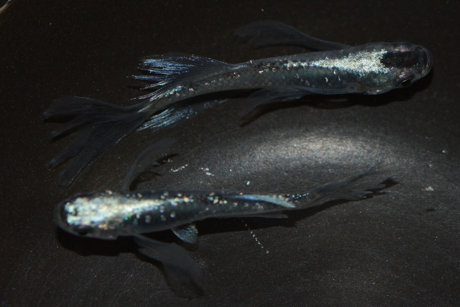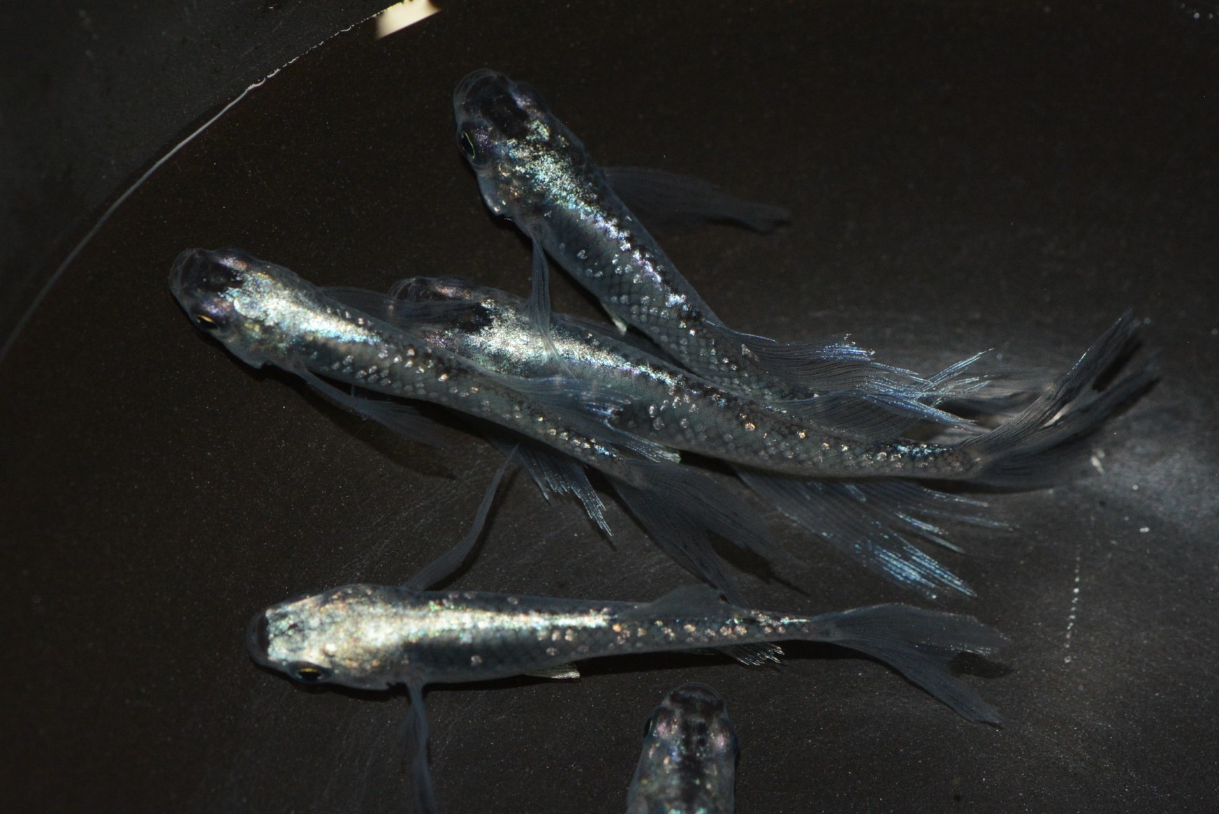 品種名:青ラメ体外光ヒレ長ヒカリメダカ